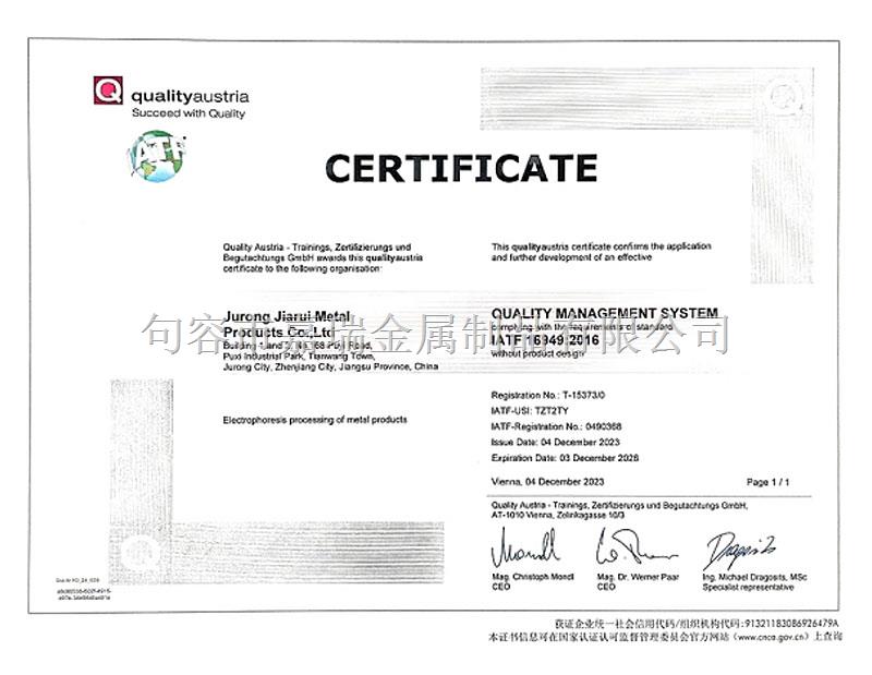 質(zhì)量管理系統(tǒng)認證證書(一)